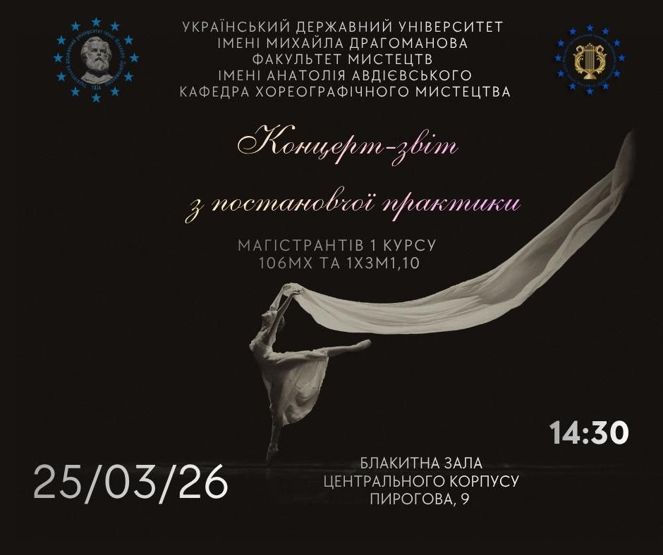Приходьте підтримати наших магістрантів спеціальності «Хореографія» на їхньому концерті-звіті з постановочної практики